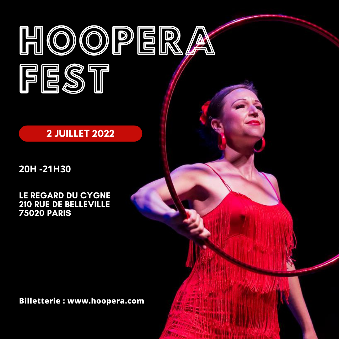 Chaque année l’école Hoopera a le plaisir de vous présenter le résultat des ateliers chorégraphiques menés pendant un trimestre avec ses élèves. Nous vous donnons rdv le samedi 2 juillet dans la belle salle de spectacle du Studio le Regard du Cygne à Paris.C’est l’occasion de découvrir où faire découvrir à vos proches la HoopDance et partager un moment de convivialité.